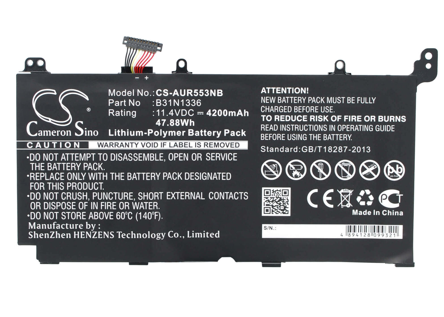 Unlock uninterrupted performance with the Cameron Sino CS-AUR553NB replacement battery, designed specifically for Asus Notebook. This high-quality 4200mAh / 47.88Wh Li-Polymer battery delivers a reliable 11.4V voltage with an energy rating of 47.88Wh, ensuring your device operates at peak efficiency throughout extended sessions. Whatever you are doing this battery provides the power and reliability you need.