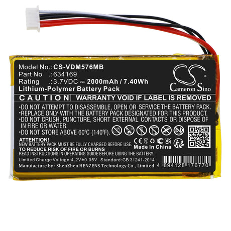 3.7v, Li-polymer, 2000mah, Babyphone Battery Fits Vtech, Rm5764-2hd, Rm5764hd, 7.4wh