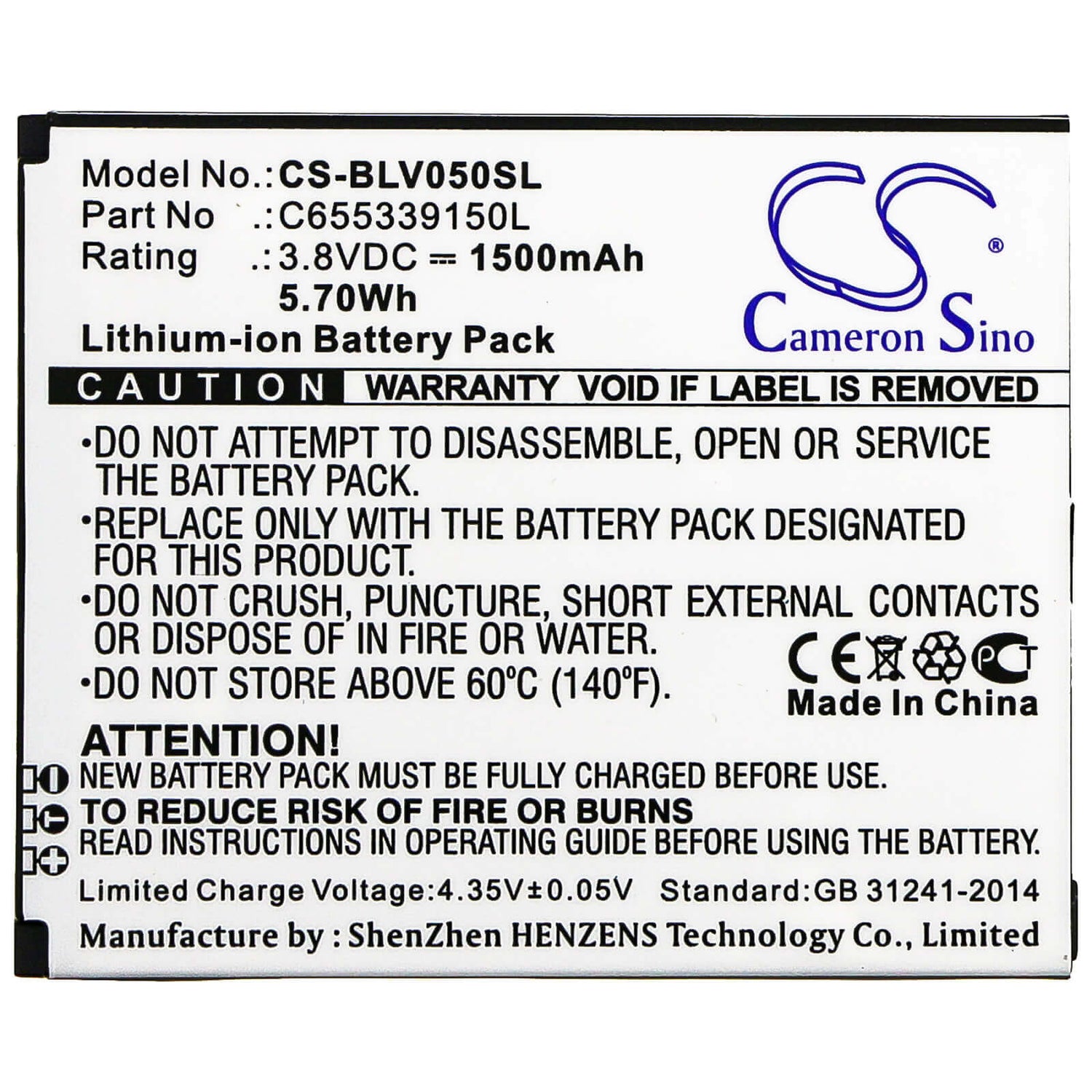 Buy with confidence! The Cameron Sino CS-BLV050SL replacement battery includes a 30-day return policy and a 1-year replacement warranty, ensuring your satisfaction and peace of mind.