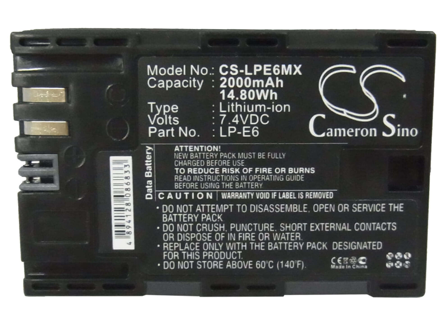 Power your Canon camera with the high-performance Cameron Sino CS-LPE6MX replacement battery, designed to provide reliable and long-lasting power for your photography sessions. Featuring a 2000mAh capacity and 7.4V voltage, this Li-ion battery ensures consistent performance, so you can capture more shots without worrying about battery life. The 14.80Wh energy rating allows for extended usage, making this battery an essential companion for your Canon gear.