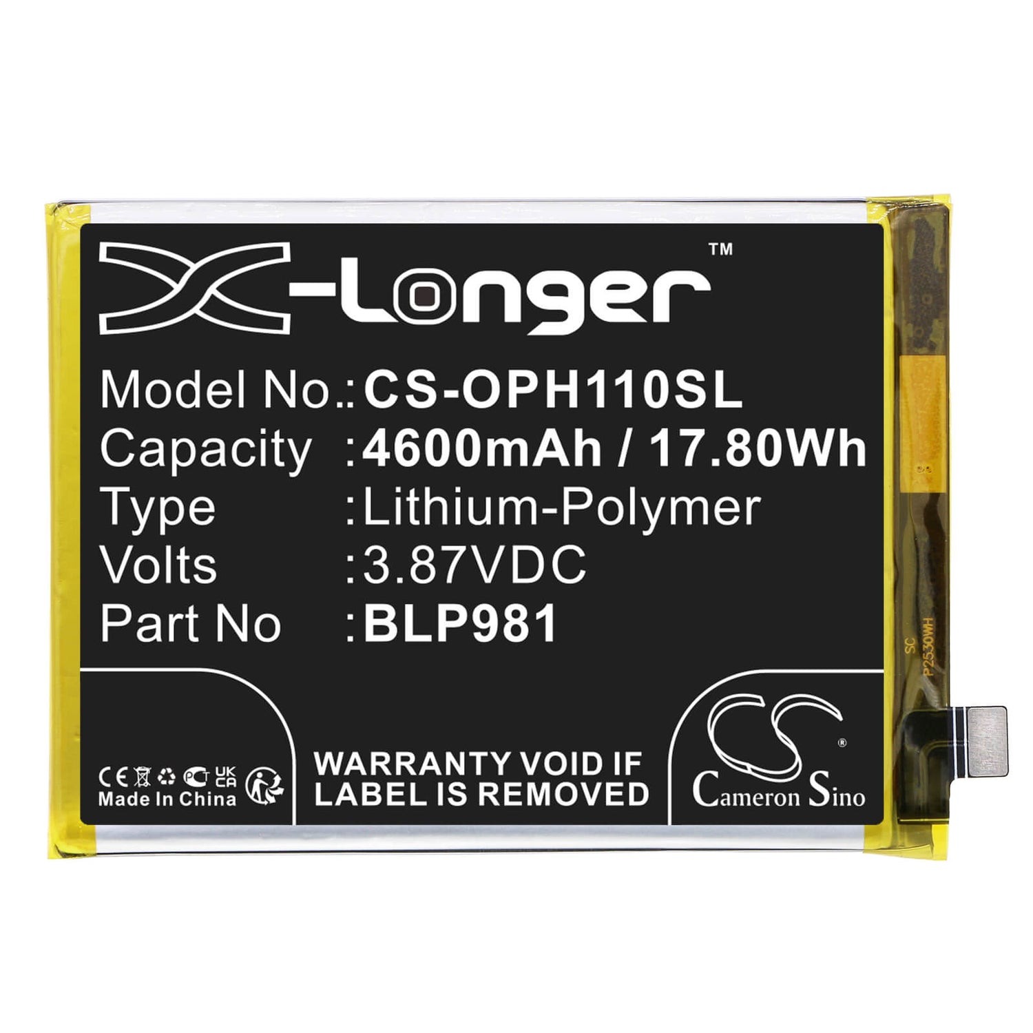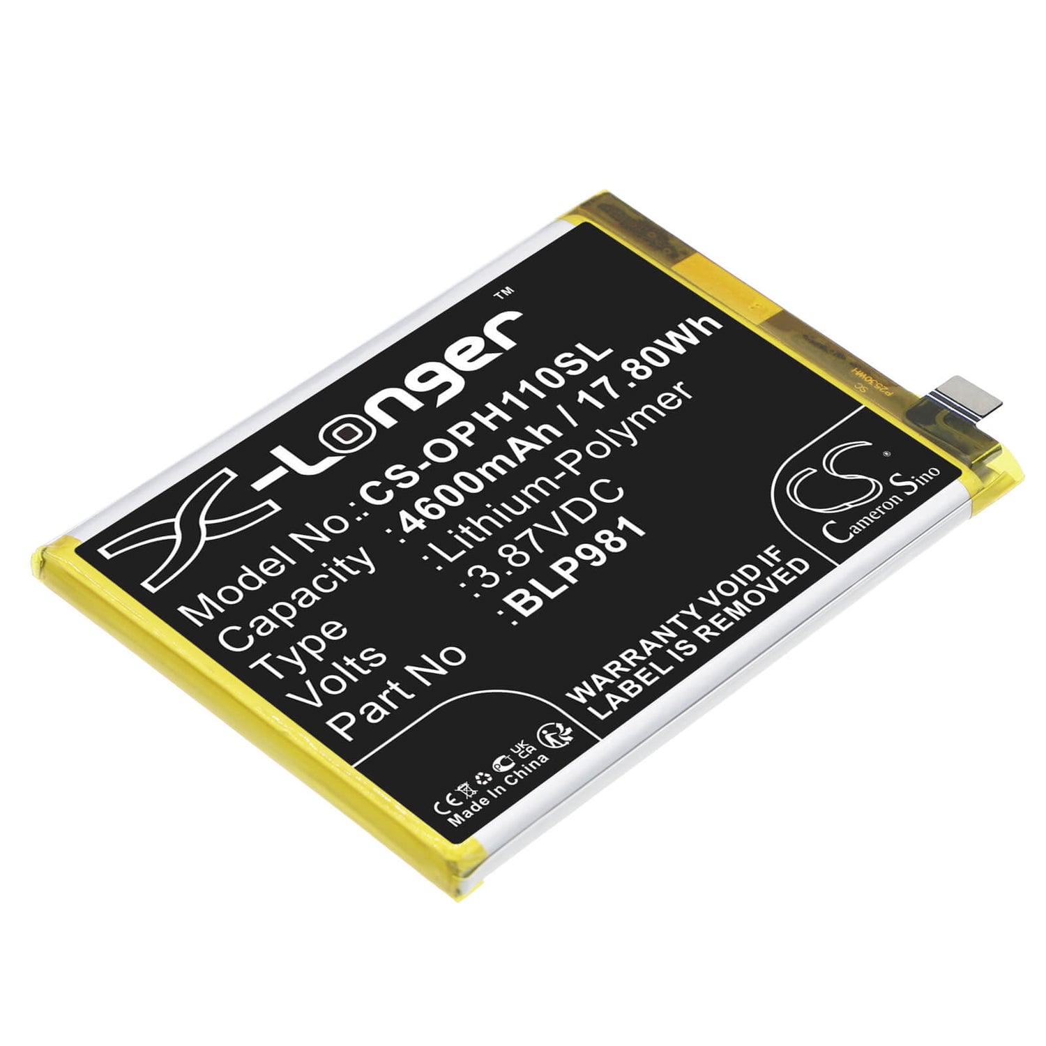 3.87V, Li-Polymer, 4600mAh, SmartPhone battery fits Oppo, Blp981, A1 Pro, Phq110, 17.8Wh