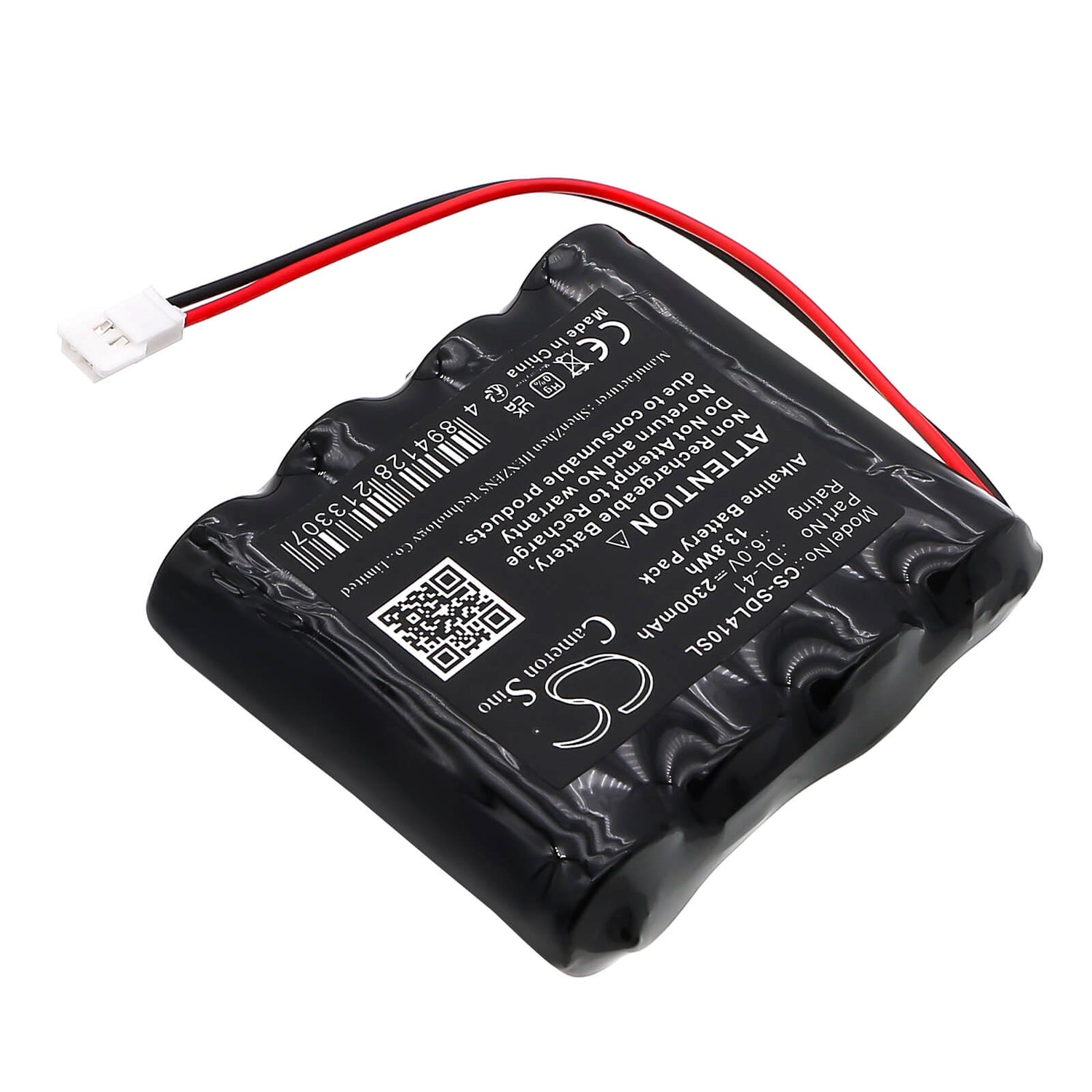 Ensure the reliable operation of your door lock system with the Cameron Sino CS-SDL410SL replacement battery. Designed for optimal performance and durability, this 6V Alkaline battery boasts an impressive 2300mAh capacity and a power rating of 13.8Wh, making it an essential power source for the DL-41 door lock.