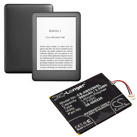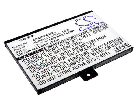 3.7V, Li-ion, 1250mAh, E-book, E-reader battery fits Barnes & Noble, 9875521, 5, Bnrv100, 4.63Wh