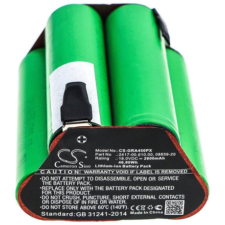 18.0V, Li-ion, 2500mAh, Gardening Tools battery fits Gardena, 09839-20, 881, 8866, 45.00Wh