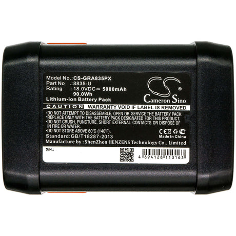 18.0V, Li-ion, 5000mAh, Gardening Tools battery fits Gardena, 8835, 48-li, 8840, 90.00Wh