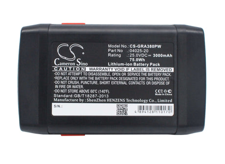 25.0V, Li-ion, 3000mAh, Lawn Mowers battery fits Gardena, 04025-20, 648872, 8838, 75.00Wh