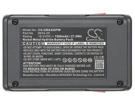 18.0V, Ni-MH, 1500mAh, Gardening Tools battery fits Gardena, 8834-20, 648844, 8844-20, 27.00Wh
