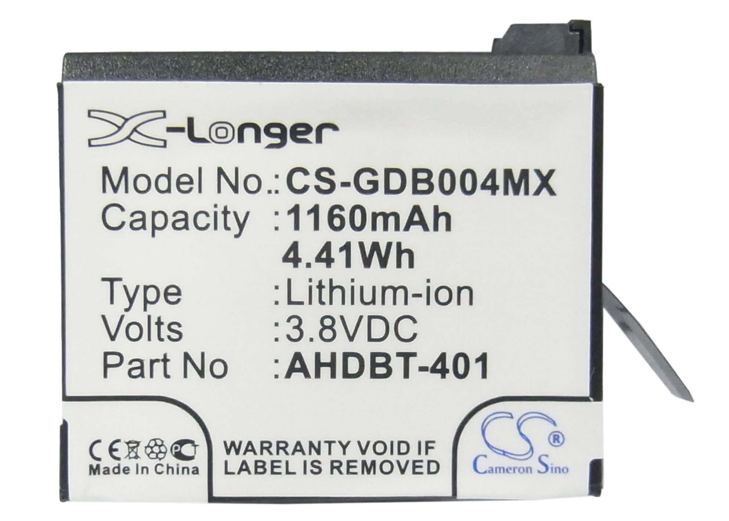 Cameron Sino CS-GDB004MX Replacement Battery for GoPro Hero 4 Cameras – 1160mAh, Li-ion, 3.8V