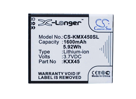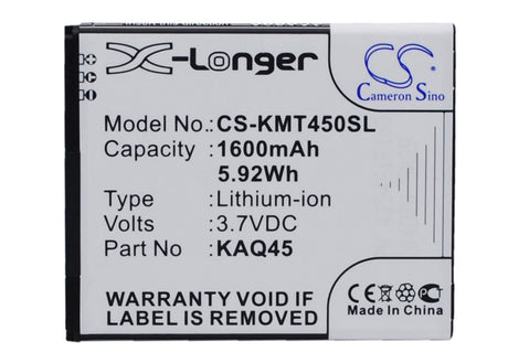 3.7V, Li-ion, 1600mAh, SmartPhone battery fits Kazam, Kxx45, Trooper 2 4.5, Trooper2 4.5, 5.92Wh