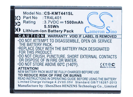 3.7V, Li-ion, 1500mAh, SmartPhone battery fits Kazam, Tr4l40, Tr4l4044044-01, Trooper 440l, 5.55Wh