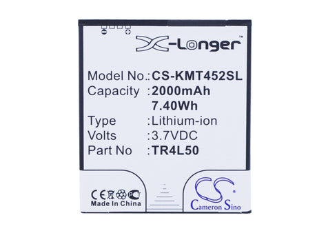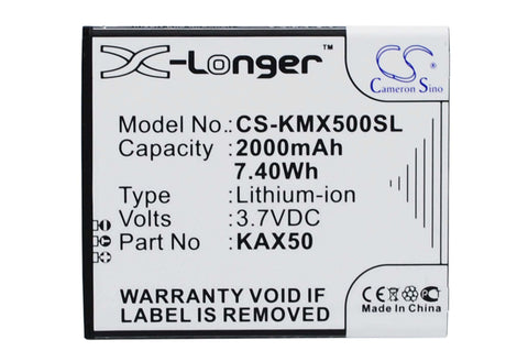 3.7V, Li-ion, 2000mAh, SmartPhone battery fits Kazam, Kax50, Trooper X5.0, 7.4Wh