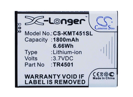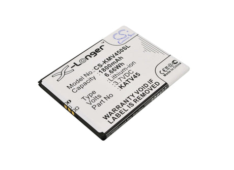 3.7V, Li-ion, 1800mAh, SmartPhone battery fits Kazam, Katv45, Tv 4.5, 6.66Wh