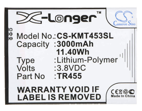 3.8V, Li-Polymer, 3000mAh, SmartPhone battery fits Kazam, Tr455, Tr45544044-01, Trooper 445, 11.4Wh