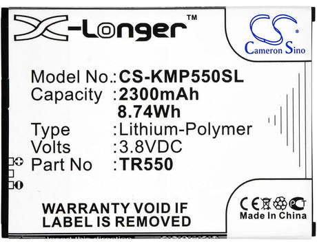 3.8V, Li-Polymer, 2300mAh, SmartPhone battery fits Kazam, Tr550, Trooper 550, 8.74Wh
