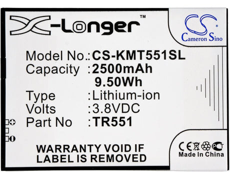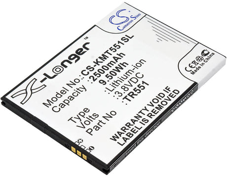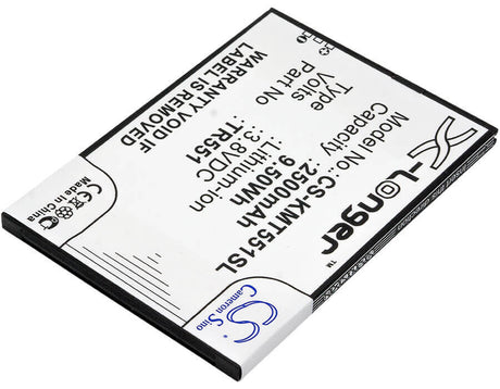 3.8V, Li-Polymer, 2500mAh, SmartPhone battery fits Kazam, Tr551, Trooper 551, 9.5Wh