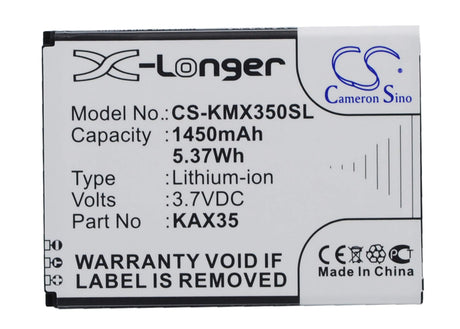 3.7V, Li-ion, 1450mAh, SmartPhone battery fits Kazam, Kax35, Trooper X3.5, 5.37Wh