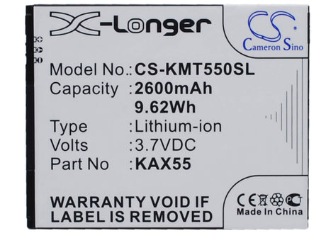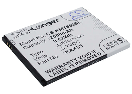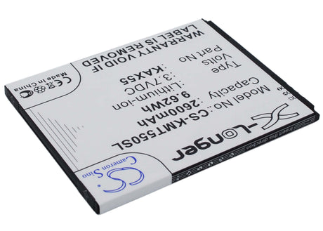 3.7V, Li-ion, 2600mAh, SmartPhone battery fits Kazam, Kax55, Trooper X5.5, 9.62Wh