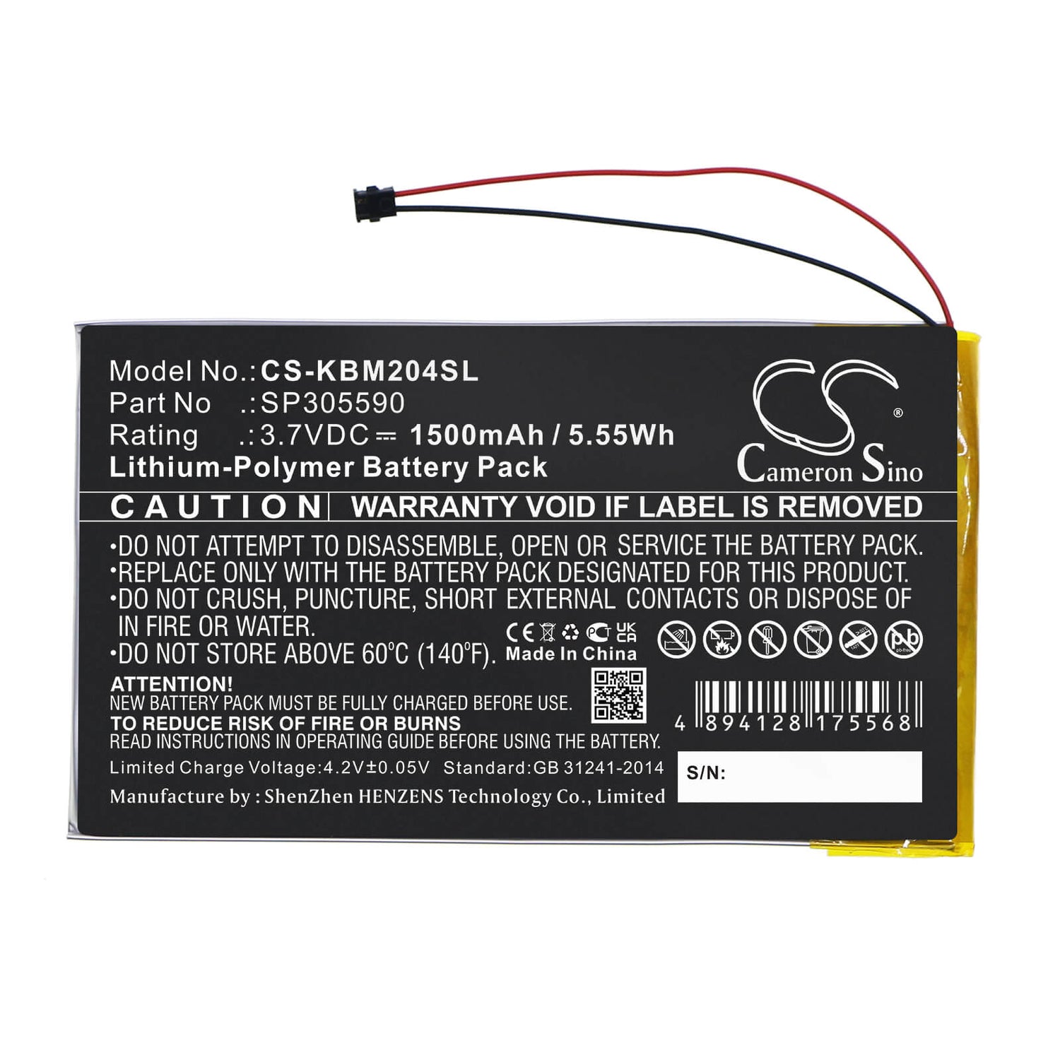 Unlock uninterrupted performance with the Cameron Sino CS-KBM204SL replacement battery, designed specifically for Kobo E-book, E-reader. This high-quality 1500mAh / 5.55Wh Li-Polymer battery delivers a reliable 3.7V voltage with an energy rating of 5.55Wh, ensuring your device operates at peak efficiency throughout extended sessions. Whatever you are doing this battery provides the power and reliability you need.