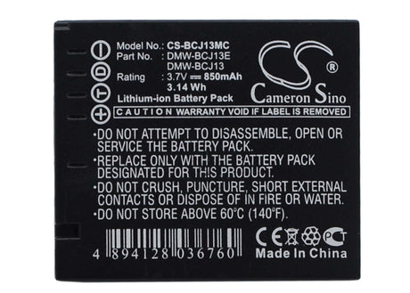 Camera Battery For Panasonic & Leica DMW-BCJ13, D-lux5e, D-lux6, V-lux 3.7v, 850mah - 3.15wh