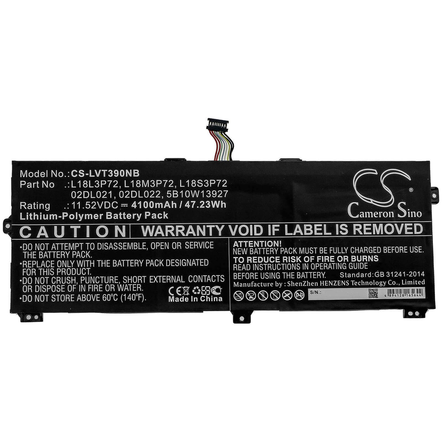 Unlock uninterrupted performance with the Cameron Sino CS-LVT390NB replacement battery, designed specifically for Lenovo Notebook. This high-quality 4100mAh / 47.23Wh Li-Polymer battery delivers a reliable 11.52V voltage with an energy rating of 47.23Wh, ensuring your device operates at peak efficiency throughout extended sessions. Whatever you are doing this battery provides the power and reliability you need.