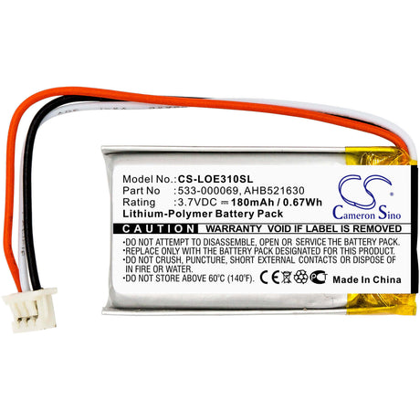 3.7V, Li-Polymer, 180mAh, Headset battery fits Logitech, 1110, H600 981-000341, 0.67Wh