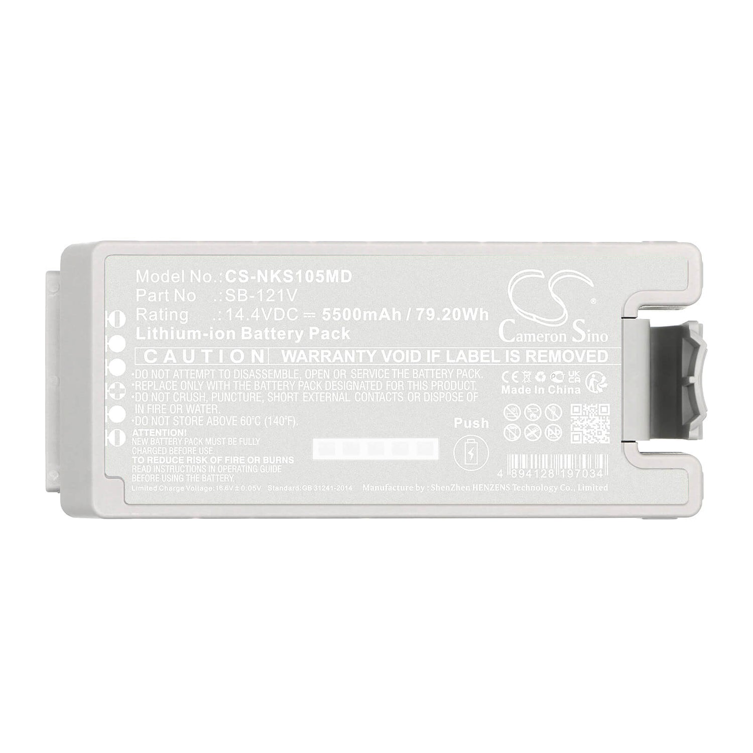 Ensure the uninterrupted operation of your medical equipment with the high-performance Cameron Sino CS-NKS105MD replacement battery. Designed specifically for the Nihon Kohden EMS-1052 defibrillator, this 5500mAh Li-ion battery delivers a stable 14.4V power supply with an energy rating of 79.20Wh. Whether you are using the defibrillator in an emergency situation or as part of routine medical operations, this battery guarantees reliable, extended usage.