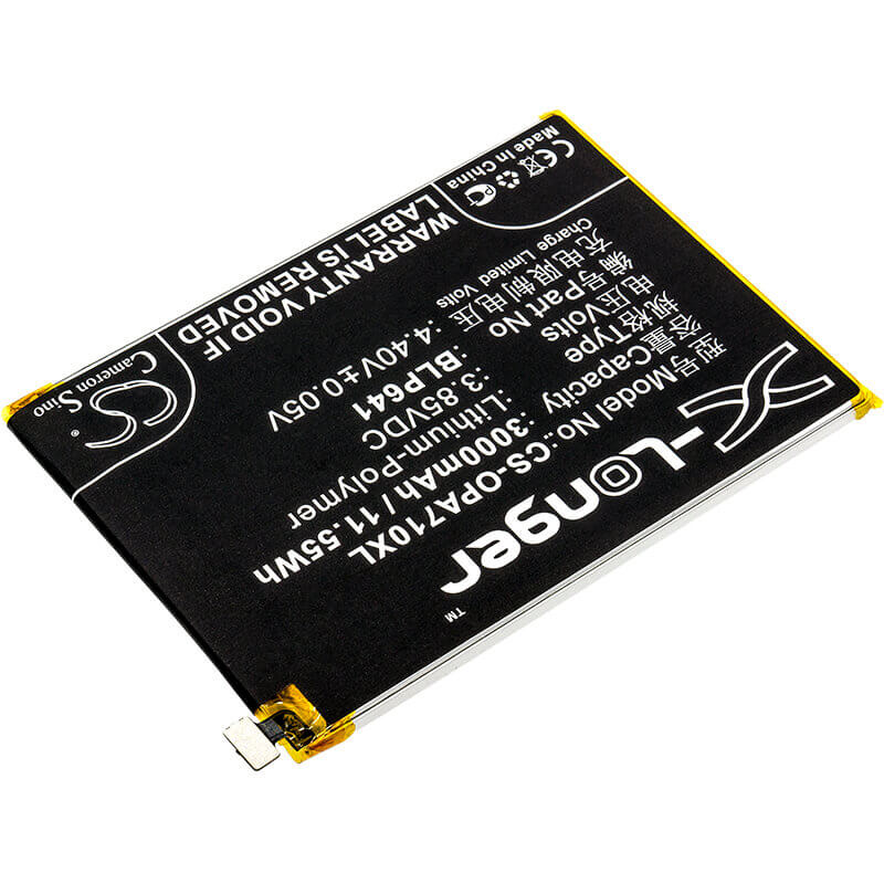 3.85V, Li-Polymer, 3000mAh, SmartPhone battery fits Oppo, Blp641, A71, A71 2018 Dual Sim, 11.55Wh