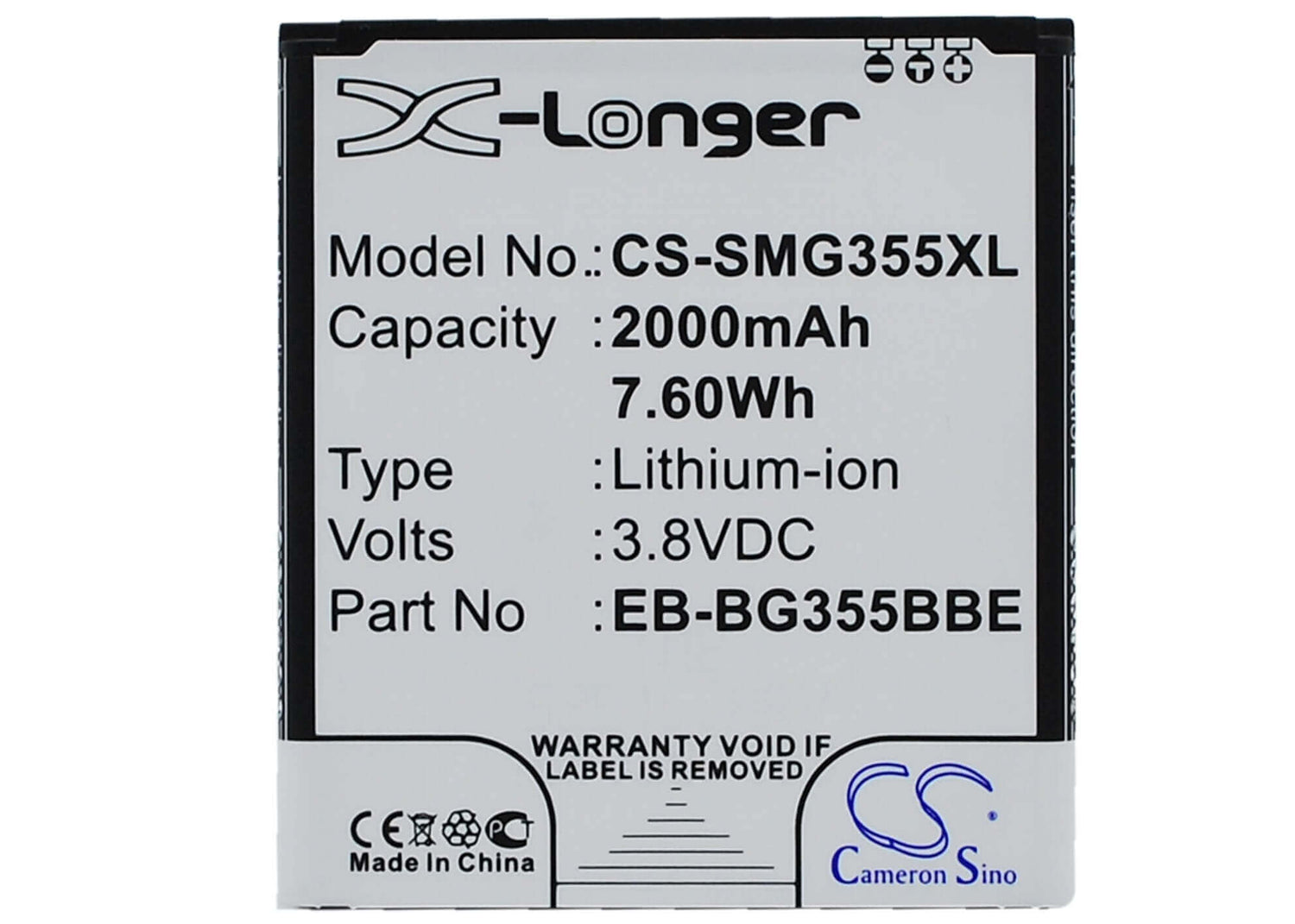 3.8V, Li-ion, 2000mAh, SmartPhone battery fits Samsung, Eb-bg355bbe, Galaxy Core 2, Galaxy Core Lite, 7.6Wh
