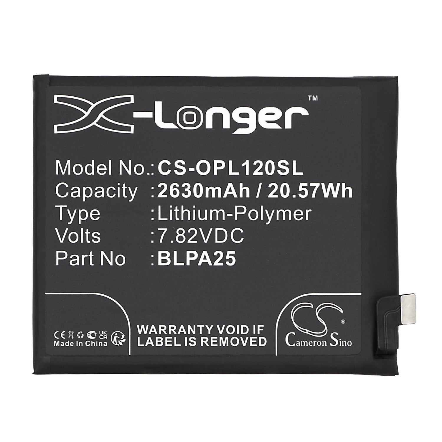 7.82V, Li-Polymer, 2630mAh, SmartPhone battery fits Oneplus, Blpa25, 12, Pjd110, 20.57Wh