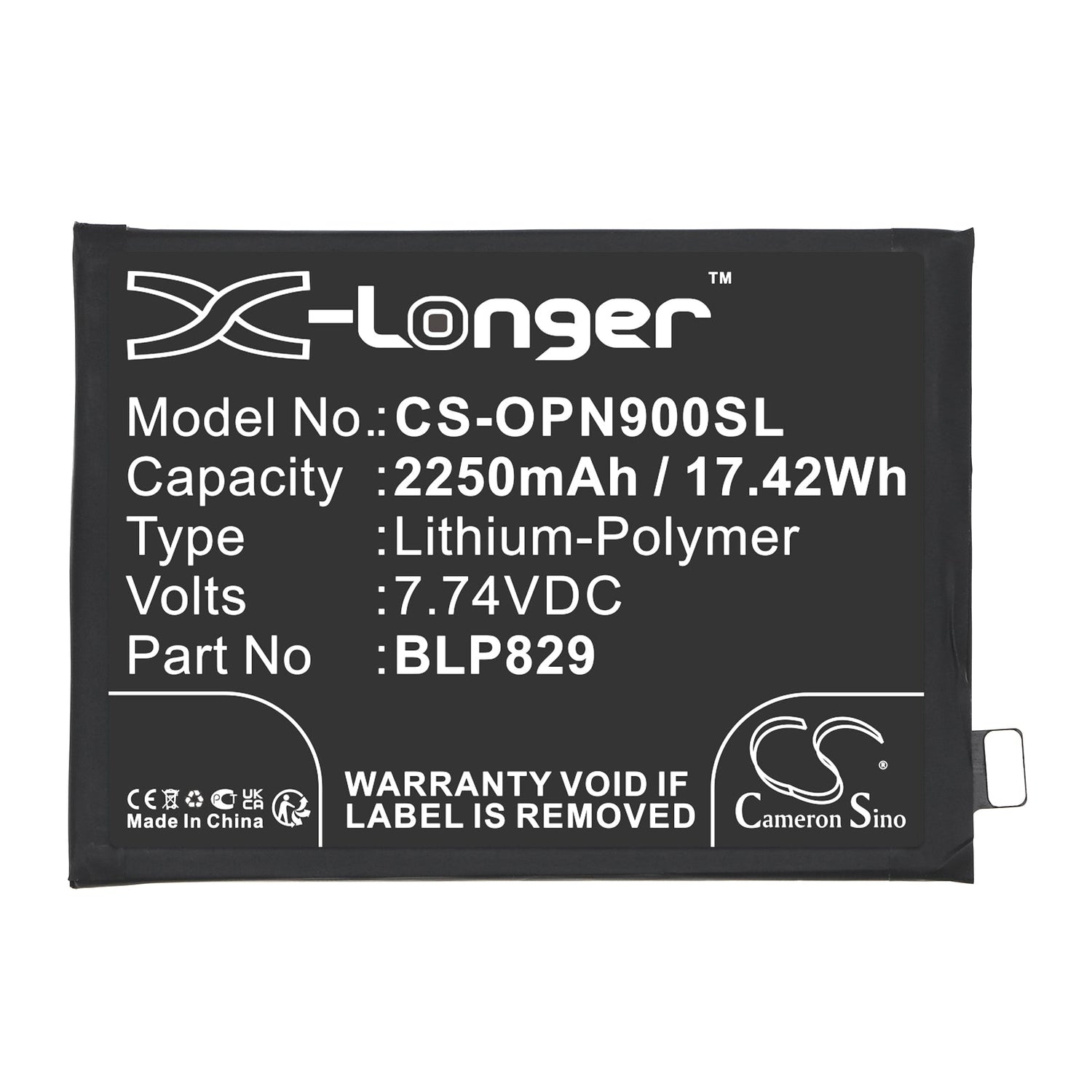 7.74V, Li-Polymer, 2250mAh, SmartPhone battery fits Oneplus, Blp829, Oneplus 9, 17.42Wh
