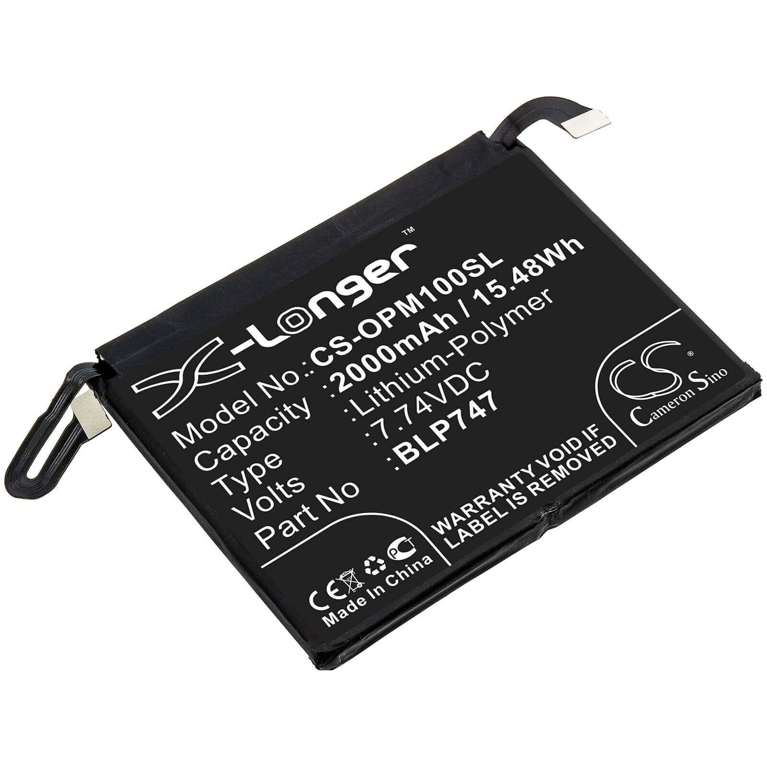 7.74V, Li-Polymer, 2000mAh, SmartPhone battery fits Oppo, Blp747, Pclm10, Reno Ace, 15.48Wh