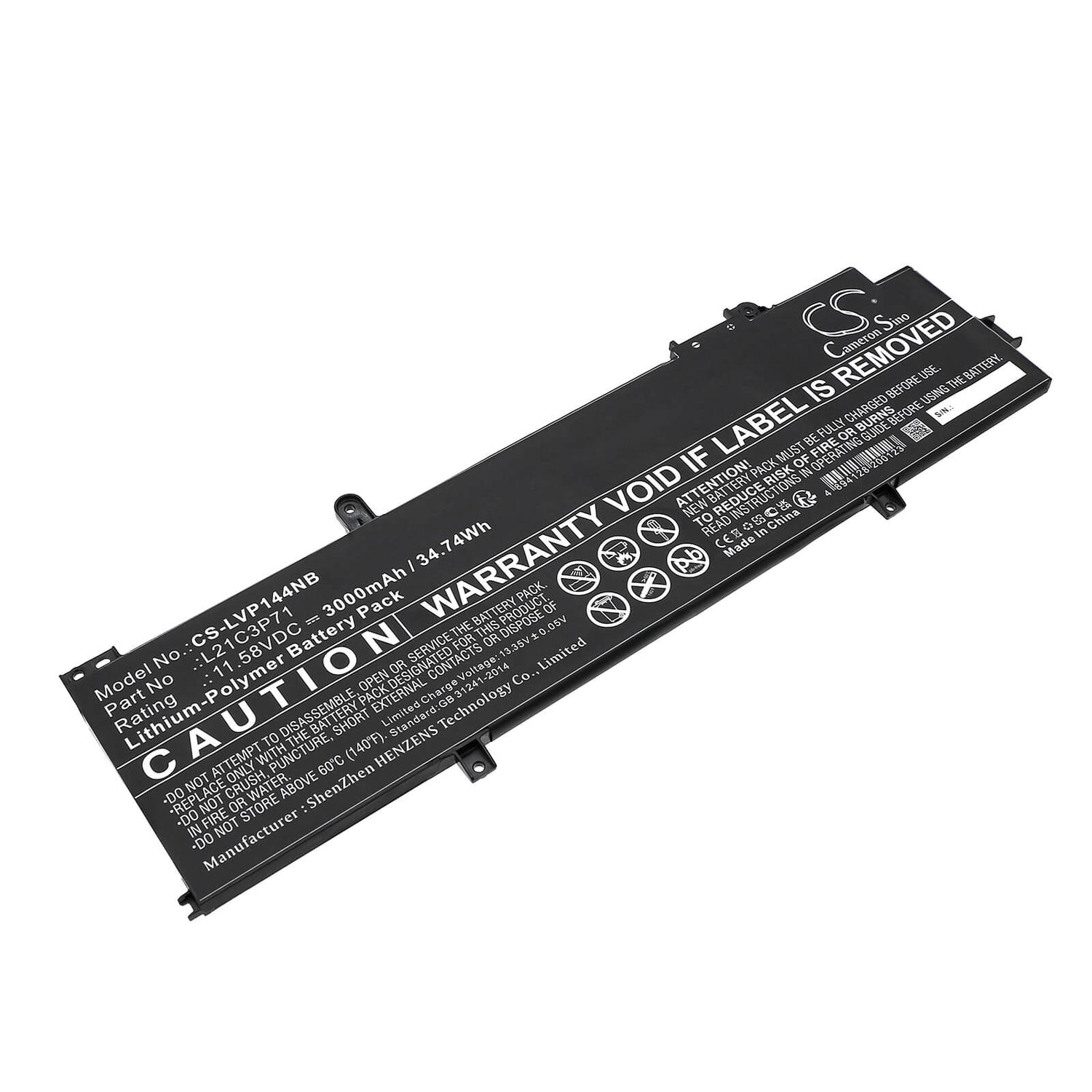 Unlock uninterrupted performance with the Cameron Sino CS-LVP144NB replacement battery, designed specifically for Lenovo Notebook. This high-quality 3000mAh / 34.74Wh Li-Polymer battery delivers a reliable 11.58V voltage with an energy rating of 34.74Wh, ensuring your device operates at peak efficiency throughout extended sessions. Whatever you are doing this battery provides the power and reliability you need.