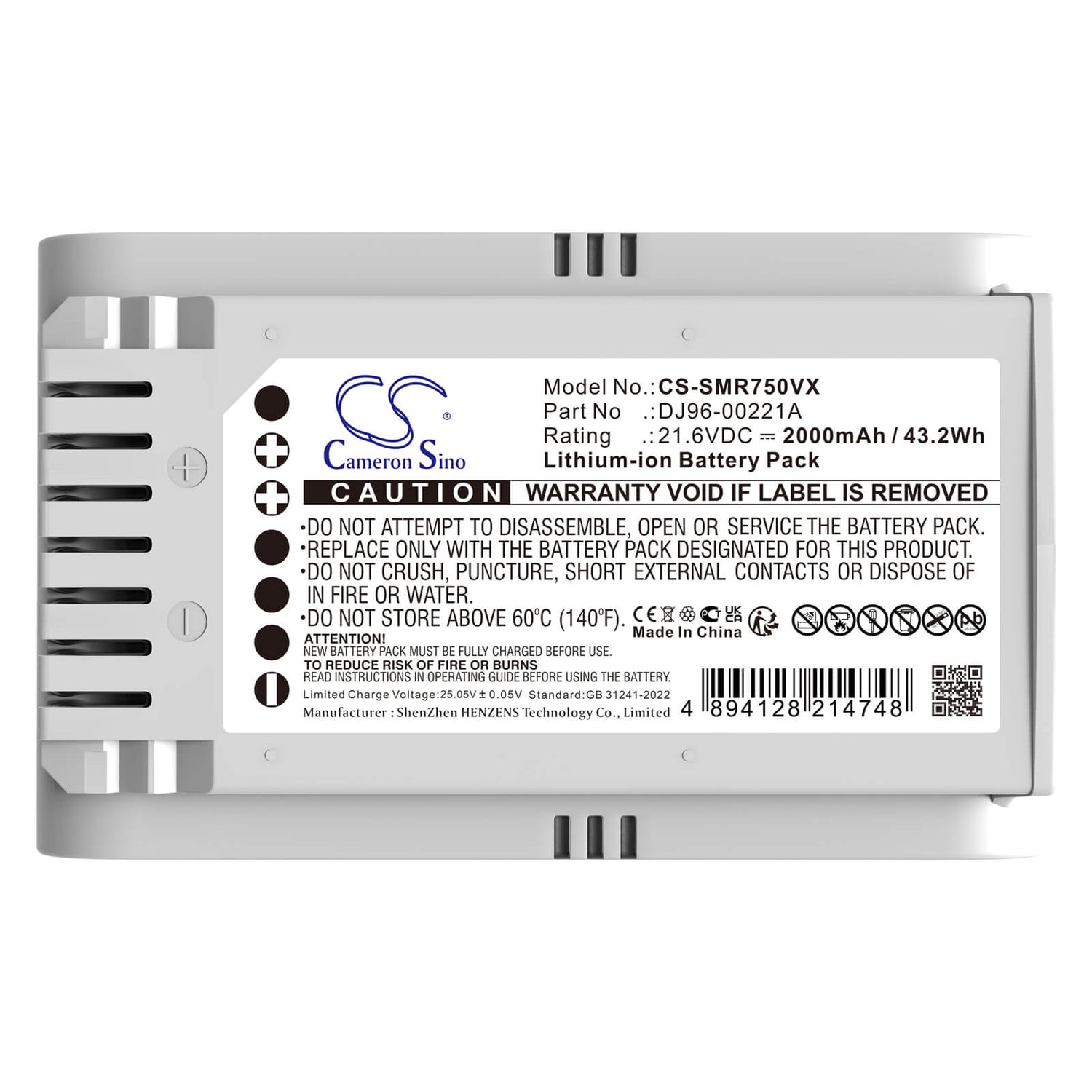 Unlock uninterrupted performance with the Cameron Sino CS-SMR750VX replacement battery, designed specifically for Samsung Vacuum. This high-quality 2000mAh / 43.2Wh Li-ion battery delivers a reliable 21.6V voltage with an energy rating of 43.2Wh, ensuring your device operates at peak efficiency throughout extended sessions. Whatever you are doing this battery provides the power and reliability you need.