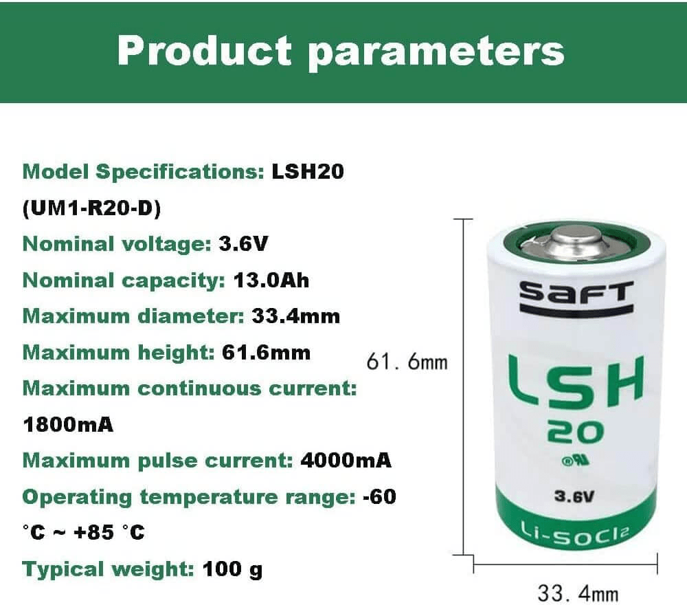 High Energy Density: Saft LSH20 batteries provide superior energy density, ensuring prolonged and stable power for your devices.