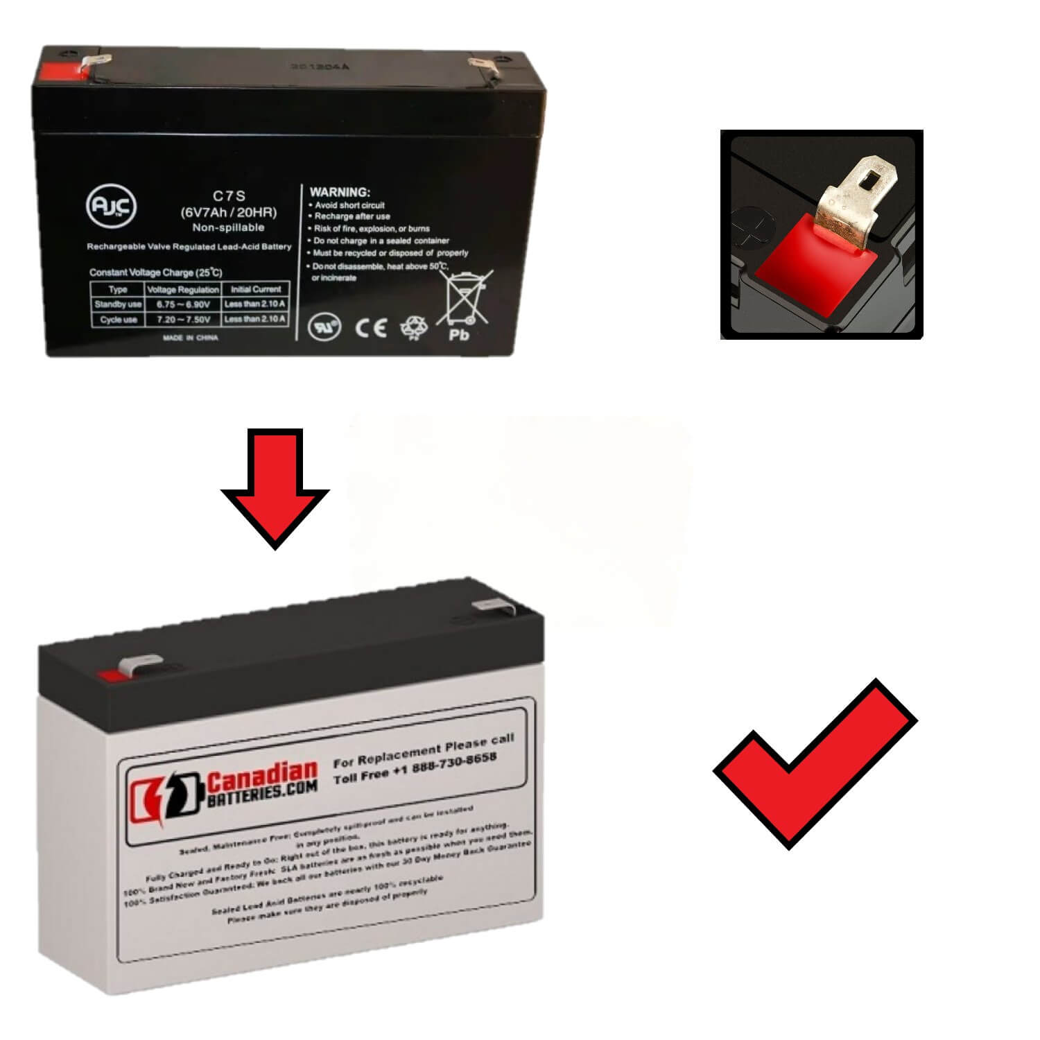 Power your UPS systems, mobility equipment, emergency lighting, and more with the CB670-F1 – a powerful 6V, 7.0Ah Sealed Lead Acid (AGM) battery designed for high-demand performance. This reliable replacement for the Ajc C7s delivers consistent, long-lasting energy in any environment. Our team of experts have ascertained that this battery will work as a drop in replacement for this model. Don't worry if the capacity is different it will still work fine as a replacement, the Ah is just an indication of its maximum runtime between charges.