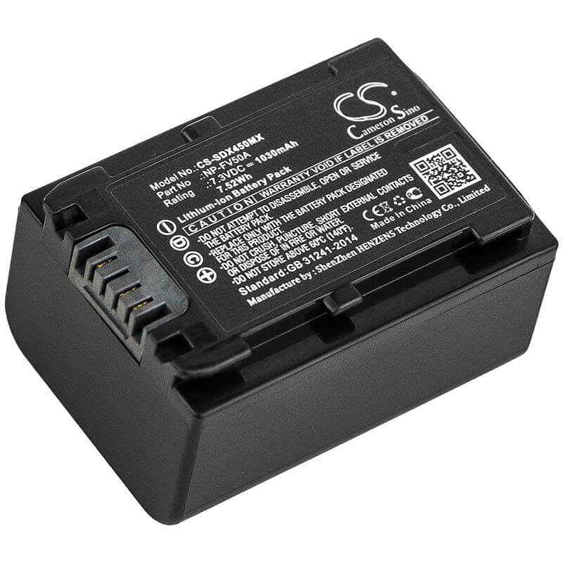7.3V, Li-ion, 1030mAh, Camera battery fits Sony, Np-fv50a, Fdr-ax33, Fdr-ax40, 7.519Wh