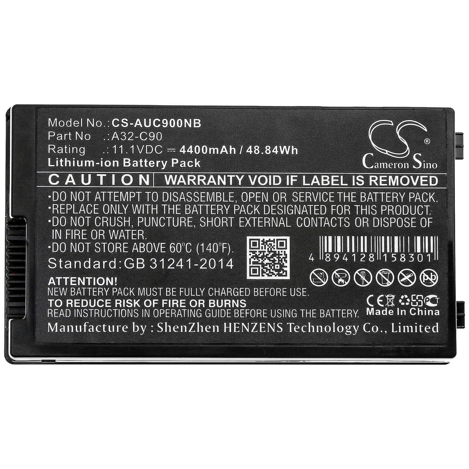 Our Li-ion battery boasts a voltage of 11.1V and a capacity of 4400mAh / 48.84Wh, ensuring reliable power for your device. Backed by a solid 1-year warranty, you can trust in the longevity and performance of our batteries. The model number CS-AUC900NB, in sleek black, fits perfectly within dimensions of 130.40 x 73.80 x 19.90mm, providing a seamless replacement for your original battery.