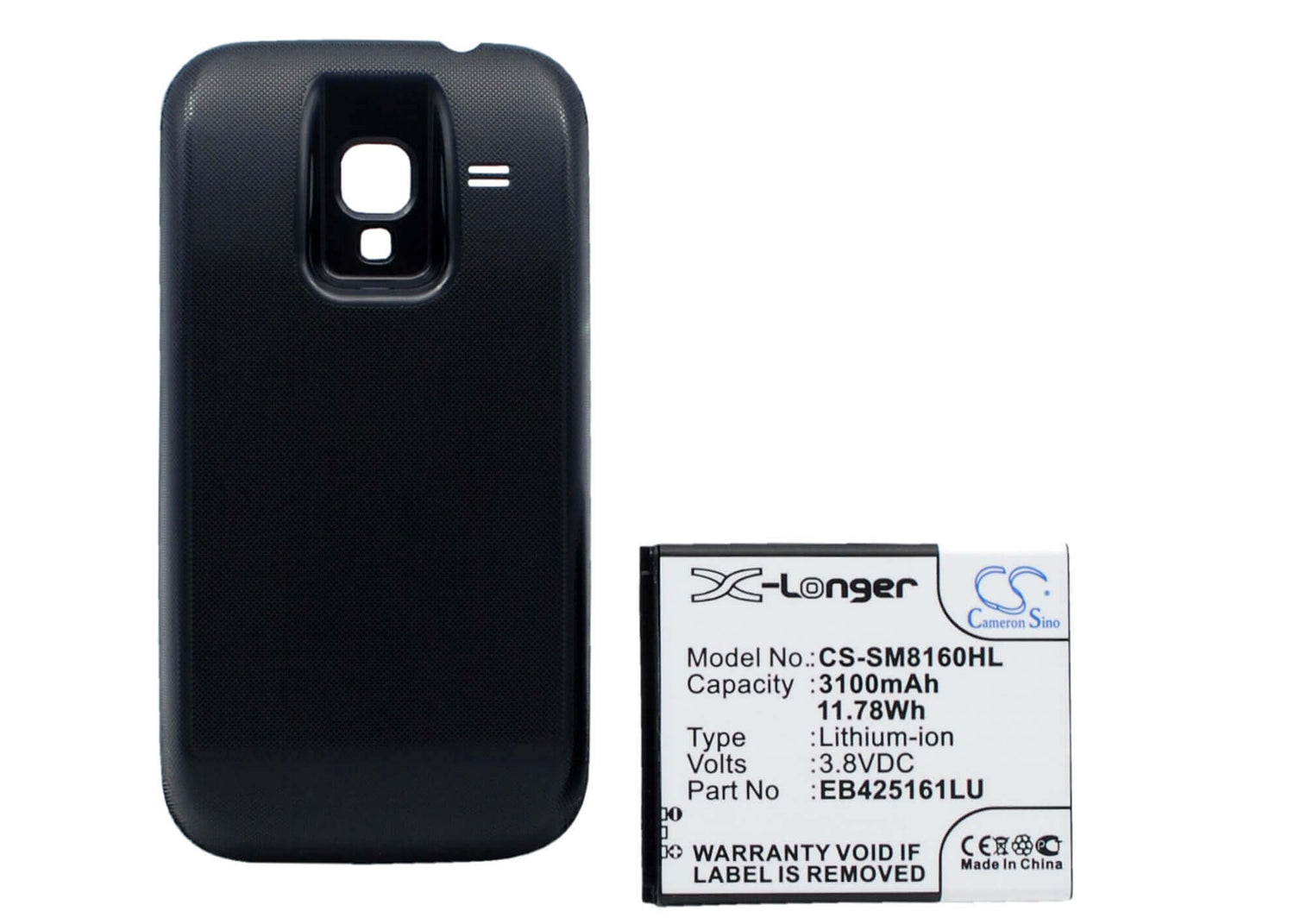 3.8V, Li-ion, 3500mAh, SmartPhone battery fits Samsung, Eb425161lu, Galaxy Ace 2, Galaxy Ace2, 13.3Wh