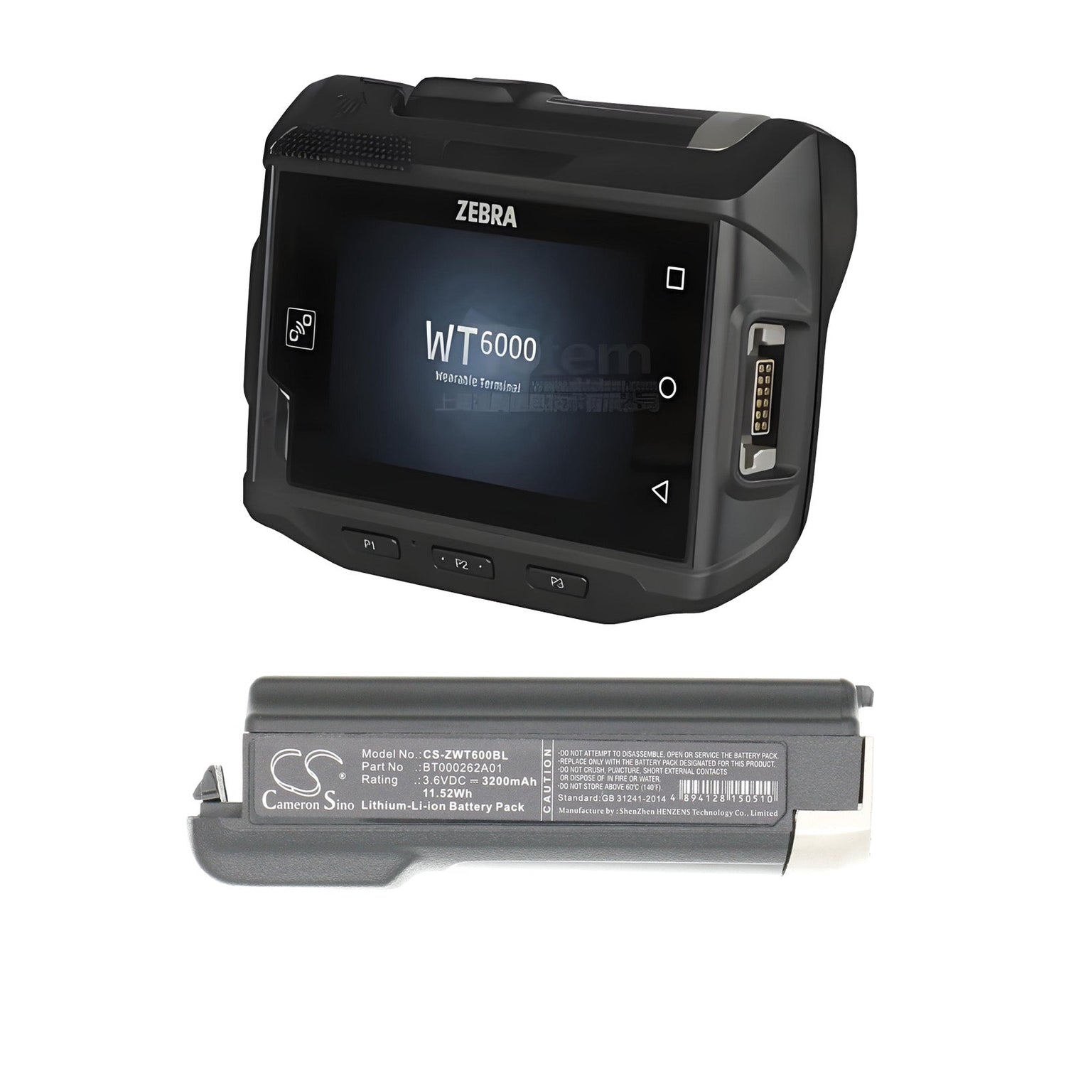 Ensure uninterrupted performance with the high-quality Cameron Sino CS-ZWT600BL replacement battery, designed specifically for Zebra barcode scanners. This 3200mAh Li-ion battery guarantees reliable power with a 3.6V voltage, delivering a rate of 11.52Wh to keep your Zebra WT6000, WT60A0, and RS6000 models running smoothly throughout the day.