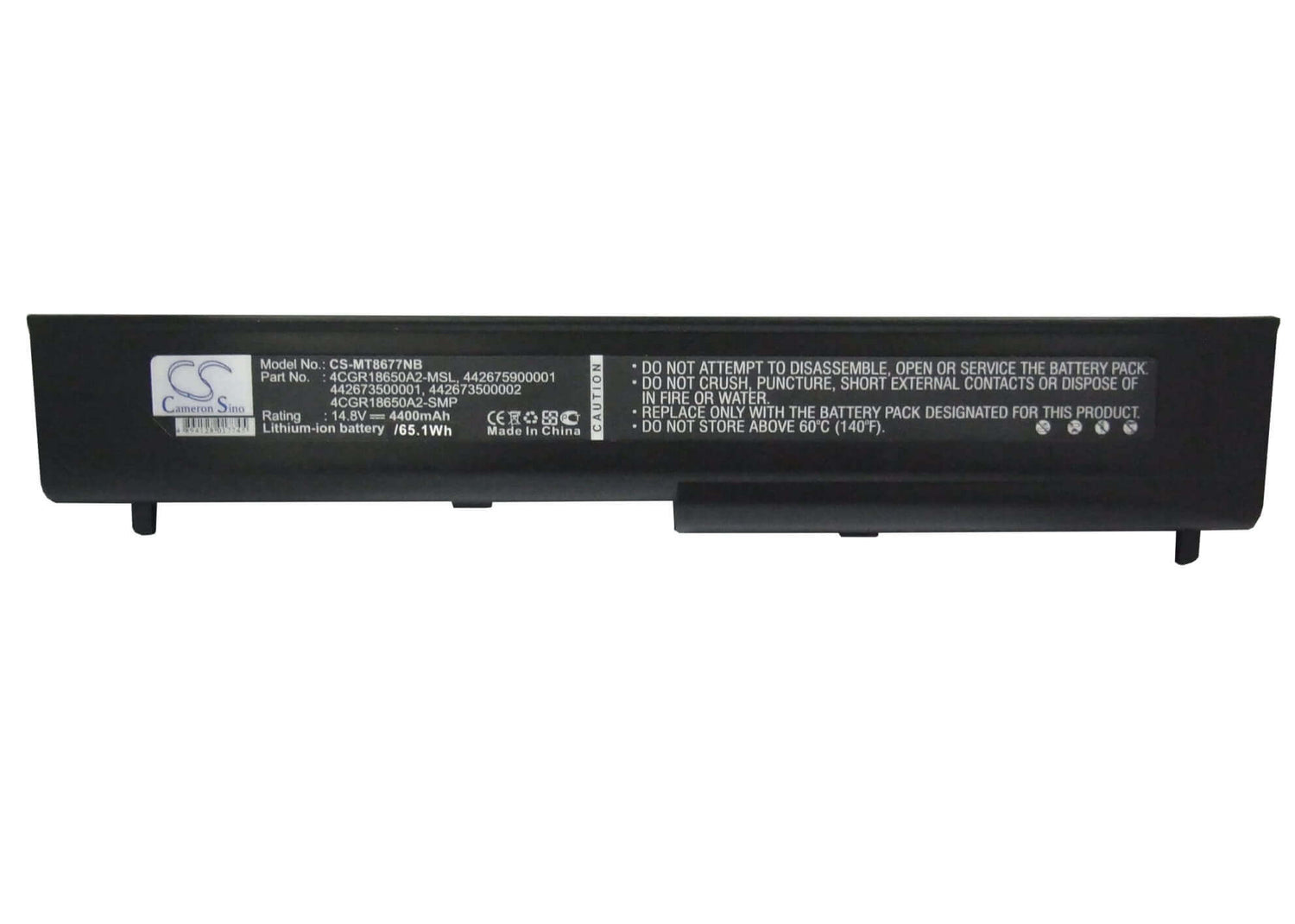 The CameronSino range of batteries will provide you with a reliable long service product. The batteries are built to last yet amazingly affordable. There can be occasions when the battery model number or the model of your device is not listed in the information below. Don't despair contact us via live chat or email and We can confirm the fitment for you. If we tell you that a battery will fit and it does not we will cover all expenses to get the battery returned to us for an exchange or a full refund. This battery is designed to replace the battery in models described below Chemistry Li-ion Voltage 14.8VCapacity4400mAh / 65.12Wh Warranty 1 Year Model Number CS-MT8677NB Color BlackDimensions(mm)274.00 x 48.00 x 20.00mmReplaces ManufacturersLenovoThere can be occasions when the battery model number or the model of your device is not listed in the information below. Don't despair contact us via live chat or email and We can confirm the fitment for you. If we tell you that a battery will fit and it does not we will cover all expenses to get the battery returned to us for an exchange or a full refund. Make sure you check that both your battery model and device are shown the information tables below. Most of our products come with a one-year warranty unless otherwise stated. The one-year warranty that we offer covers any manufacturing defect. Please note that the warranty does not cover damages due to misuse of the battery nor diminishing run time due to normal wear and tear. Battery life is dictated by a number of different factors, including temperature, charging frequency and type of charger. As a rule of thumb Nimh cells can be charged around 500 times, Lithium Ion around 400 times and Lithium polymer Around 400 times. This can increase or decrease depending on the use of the battery. This replacement High Quality battery is rated as shown in the table above, all of our replacement batteries are designed specifically to replace the OEM battery that is in your device. Our batteries are manufactured to a very high standard to enhance the performance of your device. The batteries are designed with high quality components by our ISO 9001 certified factory. Devices that this battery are known to fit can be seen in our listing below. Special Remarks:-Device Models and Battery numbers that this battery is known to support:-Device Models SupportedLenovo, E100, Mitac, Minote 8677, Nec, Versa E400, Packard Bell, Igo 2000, Igo 2410, Igo 2441, Igo 2451, Igo 4000, Igo 429 Battery Models Supported Lenovo, 442673500001, 442673500002, 442675900001, 4cgr18650a2-msl, Mitac, 442673500001, 442673500002, 442675900001, 4cgr18650a2-msl, Nec, 442673500001, 442673500002, 442675900001, 4cgr18650a2-msl, Packard Bell, 442673500001, 442673500002, 442675900001, 4cgr18650a2-mslManufacturers that this product will replace:- Manufacturers Supported Actual manufacturerLenovoCameron SinoBattery Selection (Please read - Important)Confirm that all the details listed below match to your original battery before ordering. Some models have more than one battery type available and the only way you can confirm the correct battery is to remove the original.Batteries shown with an extended back cover in the image above will need to use this cover. The battery is larger and the cover is required to be able to fit the device properly. This may affect fitment into any cases or holders you may have. Extended capacity batteries for laptops may be larger and protrude from the rear of your laptop or may raise the laptop up at the bottom