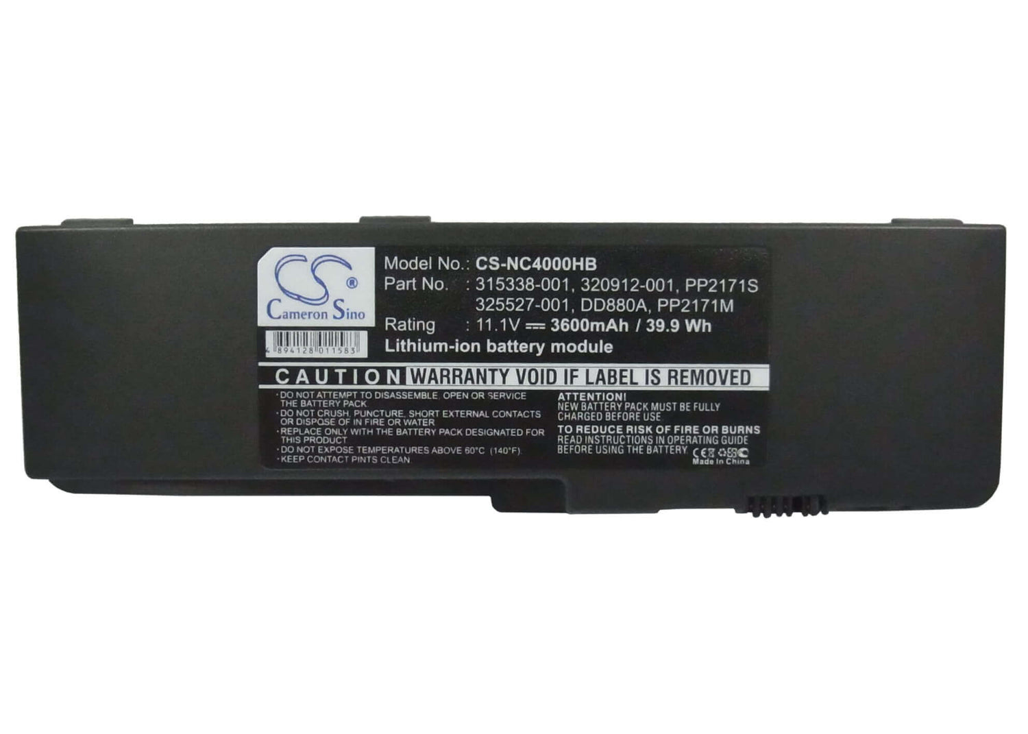 For nearly 10 Years we have supplied our current range of batteries, We have found our current suppliers to be of the highest quality and have thousands of happy customers using our products in Canada. If both your model number and battery number are listed in the product description you can be almost certain that you are ordering the correct battery. If we say it will fit and both these details match your product and it still does not fit we will exchange or refund the battery at our expense. This battery is designed to replace the battery in models described below Chemistry Li-ion Voltage 11.1VCapacity3600mAh / 39.96Wh Warranty 1 Year Model Number CS-NC4000HB Color Dark BlueDimensions(mm)210.40 x 62.70 x 13.40mmReplaces ManufacturersCompaqIf both your model number and battery number are listed in the product description you can be almost certain that you are ordering the correct battery. If we say it will fit and both these details match your product and it still does not fit we will exchange or refund the battery at our expense. Please compare the data below with the models that you see in the tables. If you cannot match both the model and battery number contact us and We can confirm the fitment for you. 12 Months warranty is usually standard on all Cameron Sino products. If there is any difference in this policy it will be stated on this page. Any misuse of the battery or modifications will invalidate the warranty. The average life of a Li-ion battery is around 400 cycles, This is the same for Lithium Polymer. Nimh should last for around 500 cycles. (A cycle is a discharge and recharge.) Please remember that a cycle will still be used, even if only partially discharged then recharged. it's always best to run the battery low and recharge when the battery reaches about 10 of it's charge left. This will extend the life of the battery. The batteries we supply are manufactured to a very high standard. To keep our ISO 9001 certification strict protocols need to be followed. This ensures that the replacement batteries are safe to use in the device they were designed for. This battery should meet or exceed the specifications of the original OEM battery. This product is designed to replace batteries as shown in the specifications table below. Special Remarks:-Device Models and Battery numbers that this battery is known to support:-Device Models SupportedCompaq, Business Notebook Nc4000, Business Notebook Nc4000-dg244a, Business Notebook Nc4000-dg245a, Business Notebook Nc4000-dg353p, Business Notebook Nc4000-dg354p, Business Notebook Nc4000-dg356p, Business Notebook Nc4000-dg357p, Business Notebook Nc4000-dg360p, Business Notebook Nc4000-dg361p, Business Notebook Nc4000-dg365p, Business Notebook Nc4000-dg366p, Business Notebook Nc4000-dg680av, Business Notebook Nc4000-dg987a, Business Notebook Nc4000-dg989a, Business Notebook Nc4000-dg990a, Business Notebook Nc4000-dg992a, Business Notebook Nc4000-dl003p, Business Notebook Nc4000-dl009p, Business Notebook Nc4000-dl011p, Business Notebook Nc4000-dl012p, Business Notebook Nc4000-dl014p, Business Notebook Nc4000-dl017p, Business Notebook Nc4000-dl029p, Business Notebook Nc4000-dl030p, Business Notebook Nc4000-dl032p, Business Notebook Nc4000-dl203p, Business Notebook Nc4000-dl214p, Business Notebook Nc4000-dl215p, Business Notebook Nc4000-dl217p, Business Notebook Nc4000-dl218p, Business Notebook Nc4000-dm893p, Business Notebook Nc4000-dm894p, Business Notebook Nc4000-dt945c, Business Notebook Nc4010-ds613av, Business Notebook Nc4010-dw348av, Business Notebook Nc4010-dy883aa, Business Notebook Nc4010-dy885aa, Business Notebook Nc4010-dy886aa, Business Notebook Nc4010-dy888aa, Business Notebook Nc4010-pa741aa, Business Notebook Nc4010-pf672aa, Business Notebook Nc4010-pf673aa, Hp, Business Notebook Nc4000, Business Notebook Nc4000-dg244a, Business Notebook Nc4000-dg245a, Business Notebook Nc4000-dg353p, Business Notebook Nc4000-dg354p, Business Notebook Nc4000-dg356p, Business Notebook Nc4000-dg357p, Business Notebook Nc4000-dg360p, Business Notebook Nc4000-dg361p, Business Notebook Nc4000-dg365p, Business Notebook Nc4000-dg366p, Business Notebook Nc4000-dg680av, Business Notebook Nc4000-dg987a, Business Notebook Nc4000-dg989a, Business Notebook Nc4000-dg990a, Business Notebook Nc4000-dg992a, Business Notebook Nc4000-dl003p, Business Notebook Nc4000-dl009p, Business Notebook Nc4000-dl011p, Business Notebook Nc4000-dl012p, Business Notebook Nc4000-dl014p, Business Notebook Nc4000-dl017p, Business Notebook Nc4000-dl029p, Business Notebook Nc4000-dl030p, Business Notebook Nc4000-dl032p, Business Notebook Nc4000-dl203p, Business Notebook Nc4000-dl214p, Business Notebook Nc4000-dl215p, Business Notebook Nc4000-dl217p, Business Notebook Nc4000-dl218p, Business Notebook Nc4000-dm893p, Business Notebook Nc4000-dm894p, Business Notebook Nc4000-dt945c, Business Notebook Nc4010-ds613av, Business Notebook Nc4010-dw348av, Business Notebook Nc4010-dy883aa, Business Notebook Nc4010-dy885aa, Business Notebook Nc4010-dy886aa, Business Notebook Nc4010-dy888aa, Business Notebook Nc4010-pa741aa, Business Notebook Nc4010-pf672aa, Business Notebook Nc4010-pf673aa Battery Models Supported Compaq, 315338-001, 320912-001, 325527-001, 335209-001, Dd880a, Pp2171m, Pp2171s, Hp, 315338-001, 320912-001, 325527-001, 335209-001, Dd880a, Pp2171m, Pp2171sManufacturers that this product will replace:- Manufacturers Supported Actual manufacturerCompaqCameron SinoBattery Selection (Please read - Important)Please make sure that the device manufacturer, The model number and also the battery part number are all listed in our product details. Some manufacturers have more than one battery type fitted in like models. We recommend that you remove the original battery before ordering to confirm this. If you are not sure we may be able to confirm for you.Please be advised that some higher capacity batteries are larger than the standard battery from the manufacturers. Please make sure that yo