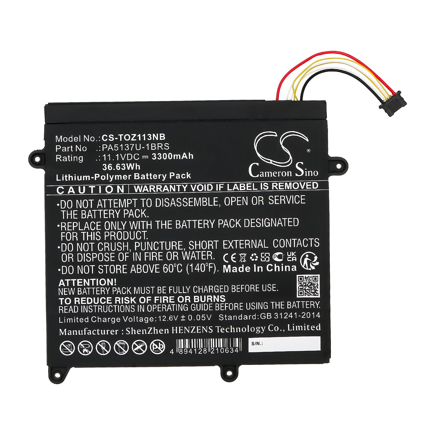 Power up your Toshiba Portege Z10T-A series with the Cameron Sino CS-TOZ113NB Replacement Battery—a high-performance Li-Polymer battery designed to keep your tablet running efficiently. With an impressive 3300mAh capacity and an 11.1V output, this 36.63Wh battery provides long-lasting power for professional and personal use.