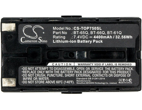 7.4V, Li-ion, 4400mAh, Equipment battery fits Topcon, Bt-61q, FC100, Fc-100, 32.56Wh