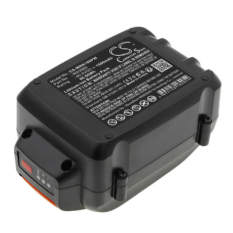 40.0V, Li-ion, 1500mAh, Power Tools battery fits Worx, Wa3580, Wa3747, Wa3877, 60Wh