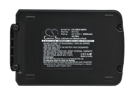 20.0V, Li-ion, 2000mAh, Power Tools battery fits Worx, Wx152, Wa3528, Wa3551.1, 40Wh