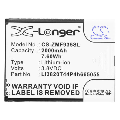 3.8V, Li-ion, 2000mAh, Hotspot battery fits Zte, Li3820t44p4h665055, Mf935, 7.60Wh