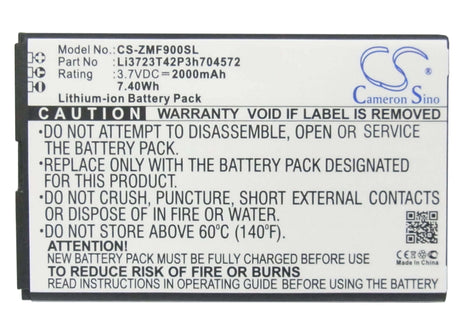 3.7V, Li-ion, 2000mAh, Hotspot battery fits Mts, Zte, Li3720t42p3h704572, 831ft, 833f, 7.40Wh