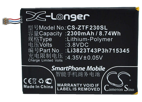 3.8V, Li-ion, 2000mAh, Hotspot battery fits Zte, Li3820t43p4h735550, Wifi5 Mf932, 7.60Wh