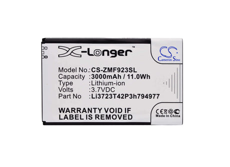 3.7V, Li-ion, 2900mAh, Hotspot battery fits Zte, Li3727t42p3h665678, Ar910, Ar910-a, 10.73Wh