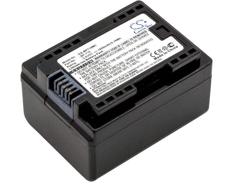 3.6V, Li-ion, 1600mAh, la batterie de la caméra s'adapte à Canon, BP-718, IXIA HF M56, IXIA HF R306, 5,76Wh